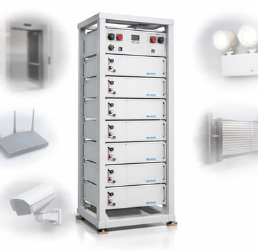 Em prédios residenciais e comerciais, a falta de energia pode deixar pessoas presas. Um sistema de no-break inteligente permite: